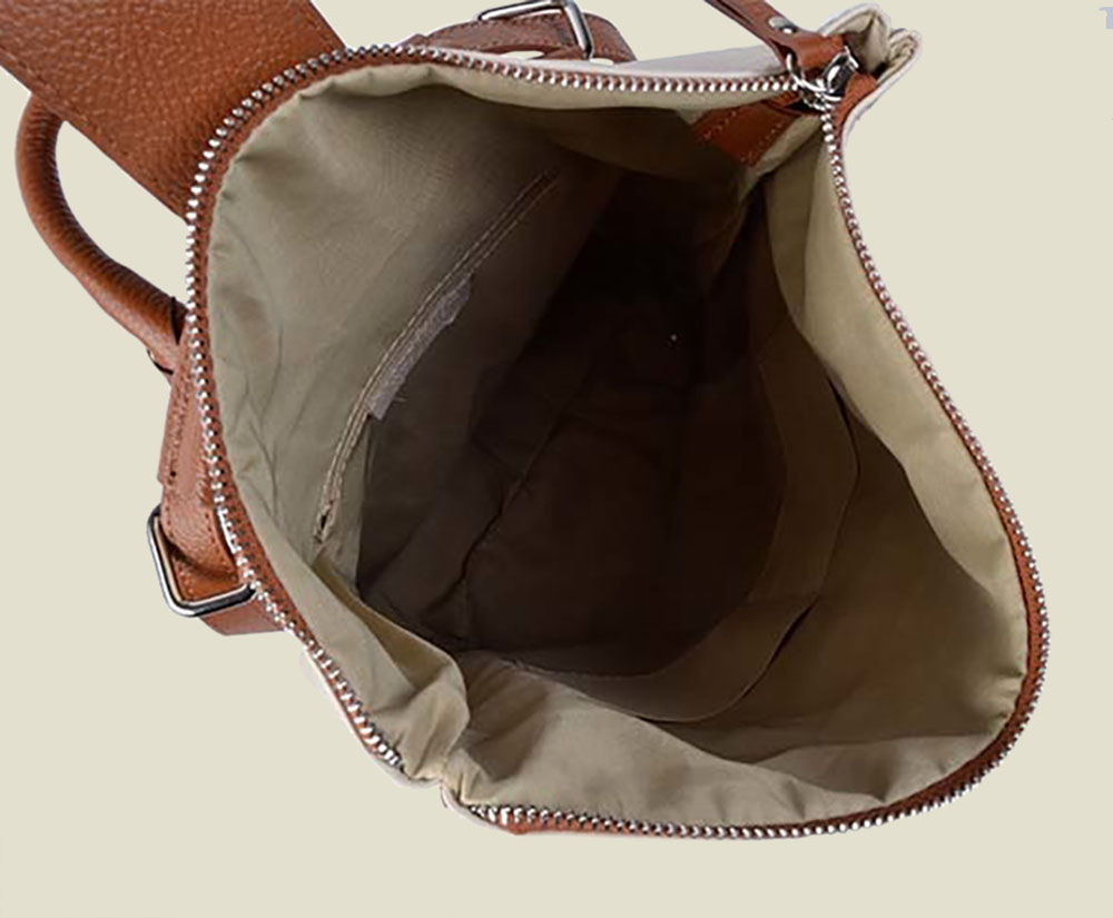 De tas heeft binnenin een klein vakje afsluitbaar met rits en 2 vakjes.