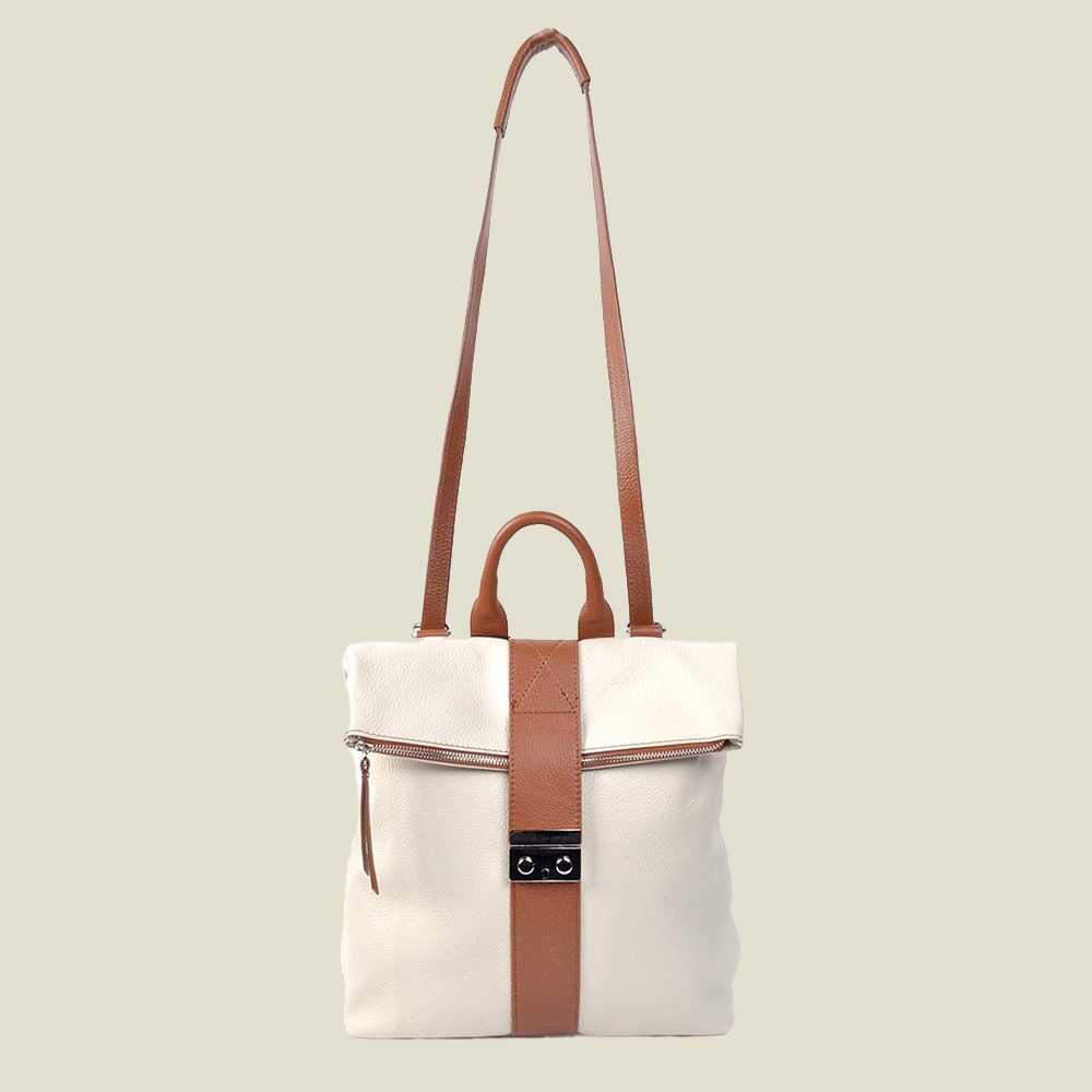 Deze stijlvolle handtas is ook als rugtas te dragen.