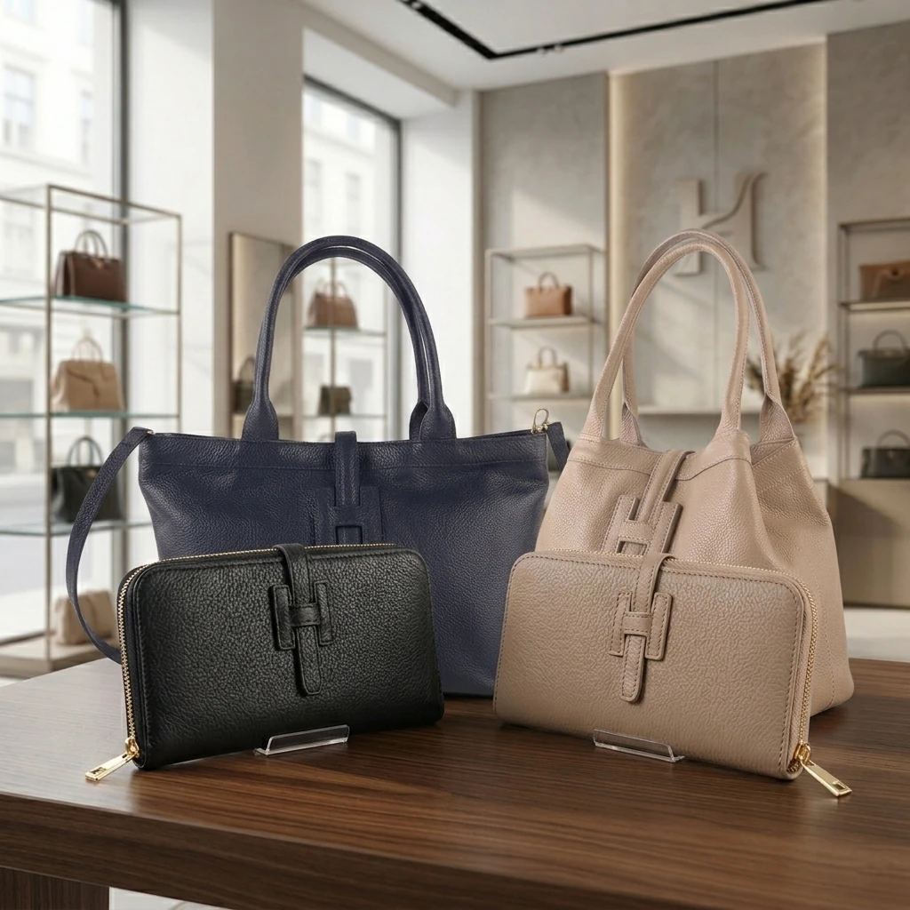 met de Montelparo handtas, De overeenkomst met de H-sluiting van de tas en de portemonnee maakt het één geheel en zal menig ander verrassen.